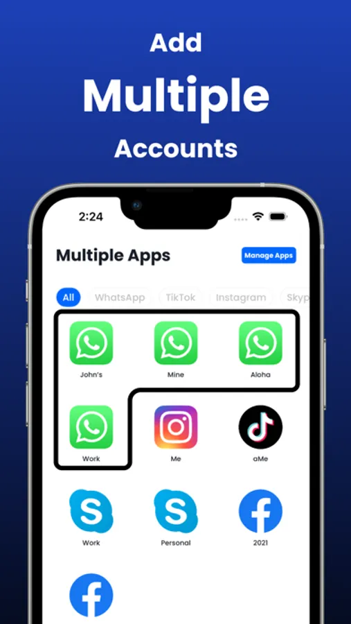 Parallel Account is a useful tool to manage your work and life on one phone. Parallel Account allows you to multiple accounts of different app on one phone, such as Whatsapp, Instagram, Facebook, Twitter, Pinterest, Messagener, ect.