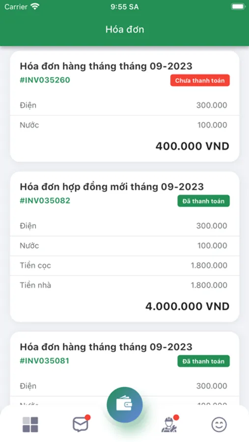 - Nhận các thông báo cập nhật về hóa đơn, hợp đồng, thu chi, phản ánh...