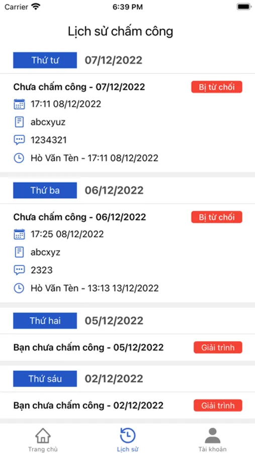 - Xem lịch sử chấm công và giải trình công nếu cần thiết