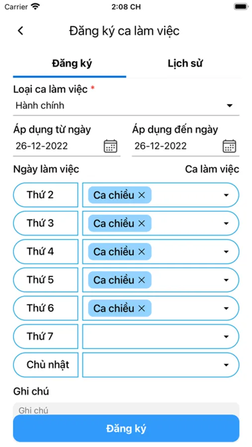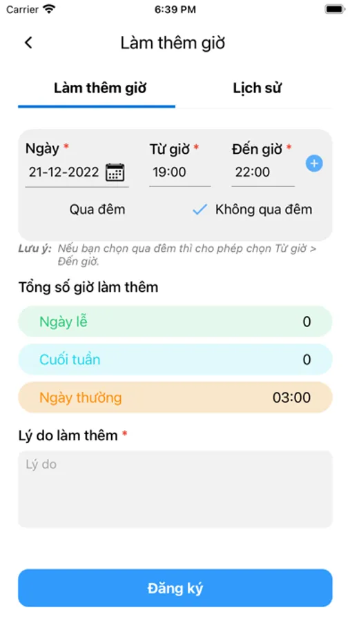 - Đăng ký nghỉ phép, địa điểm remote, làm thêm giờ... nhanh chóng và tiện lợi.