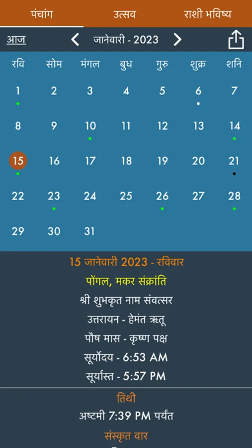 Simple Calendar app with Panchang and Rashi Bhavishya details for all the Marathi speaking people and Marathis around the world.