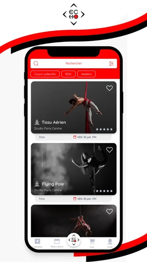 Horaires, planning des cours, réservation de séances, actualités ou prochains workshops… Avec l’appli officielle EchoLive, votre studio reste accessible 24h/24, 7j/7 !