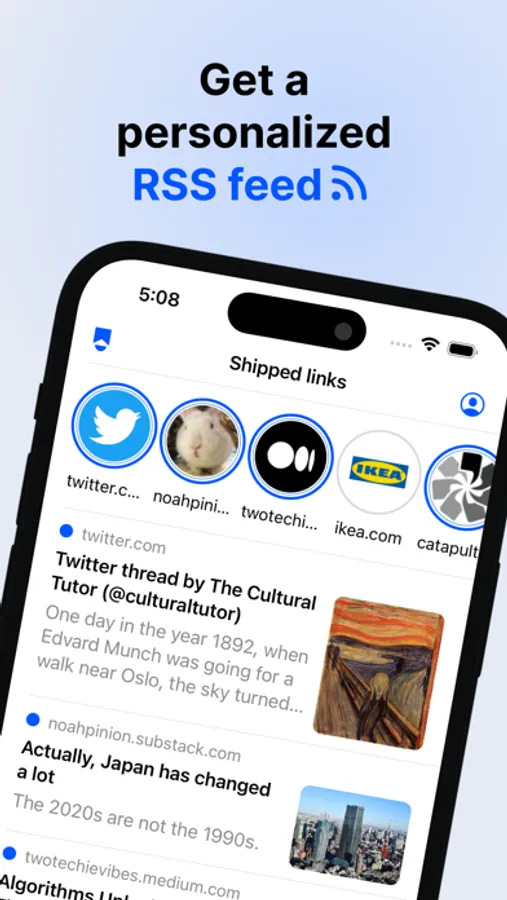 While Linkship app comes with a built-in reader app, you're welcome to continue using your existing RSS news reader and keep your reading stack in check.