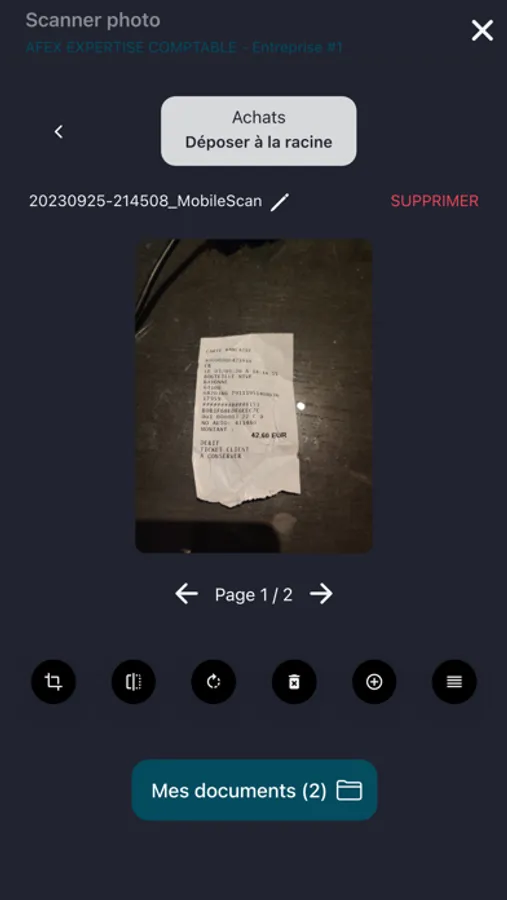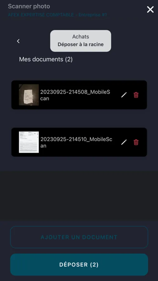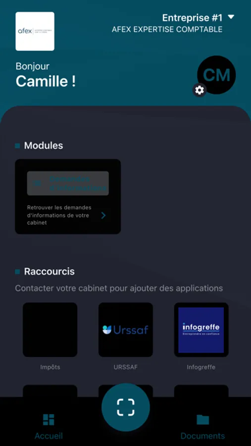 L'application AFEX EXPERTISE COMPTABLE permet aux utilisateurs de scanner leurs documents depuis leur smartphone et de les envoyer directement sur la plateforme.