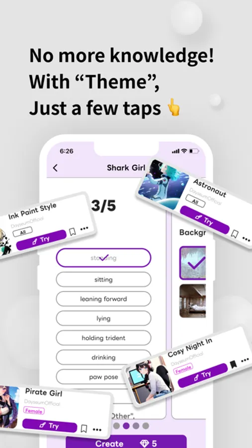 Template feature that can be easily generated with just a few taps. The number of styles and situations is infinite!