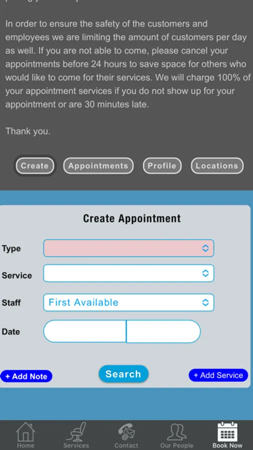 The easiest way to book appointments is directly through your phone or iPad using our app. Once your appointment is booked, you’ll receive a notification confirmation email. You will also receive an email appointment reminder and (if you opt-in) an appointment reminder via text message.