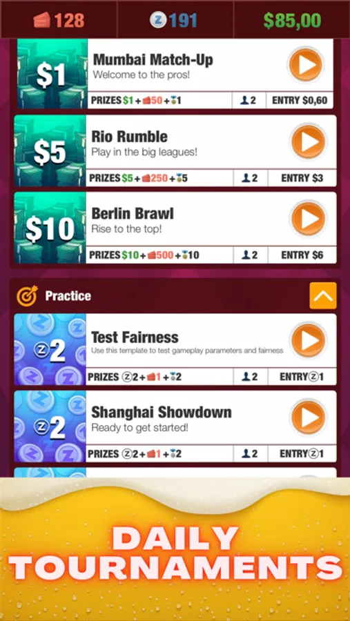 • Enter in Cash Tournaments to play against other players for awesome rewards!