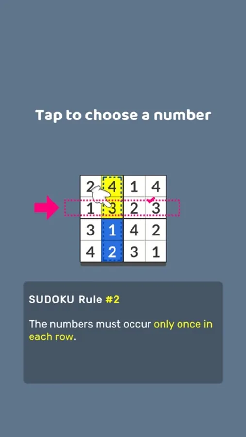 #2 The numbers must occur only once in each row.