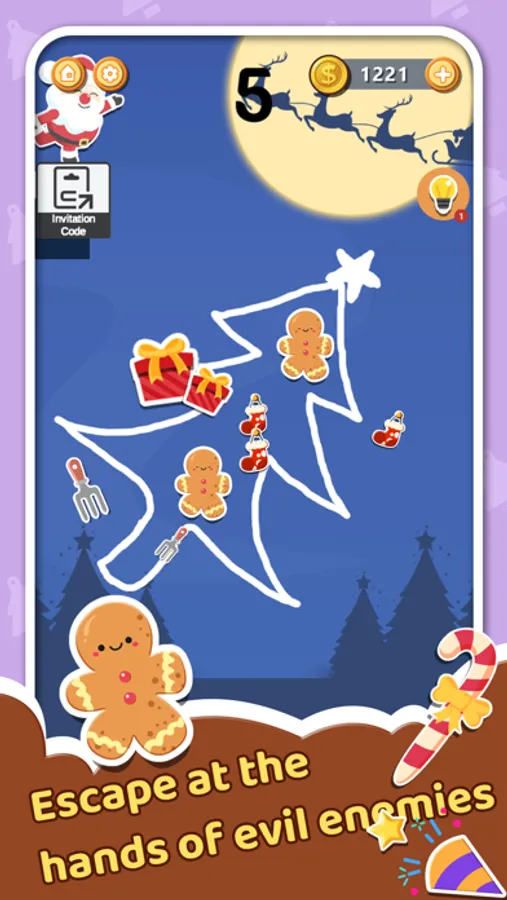 Draw a line or circle to protect the gingerbread man from various danger, such as: