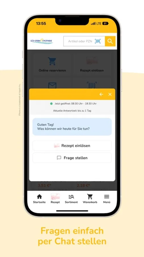 Wir bieten Ihnen über die App unser gesamtes Sortiment. Nicht sofort verfügbare Produkte bestellen wir für Sie und machen Sie in der Regel bis zum nächsten Werktag abholbereit. Gerne liefern wir Ihnen Ihre Bestellung per Botendienst direkt nach Hause.