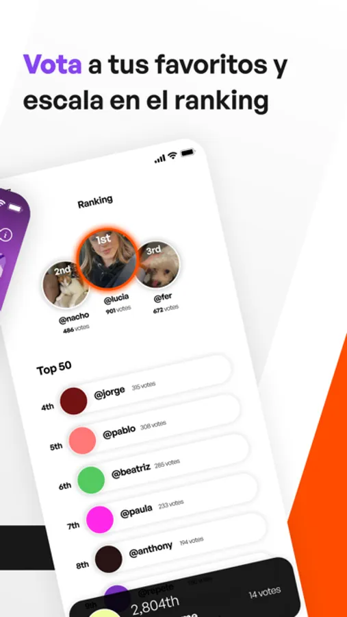 •Escala en el ranking consiguiendo votos para estar en el top. ¡Qué gane el mejor!