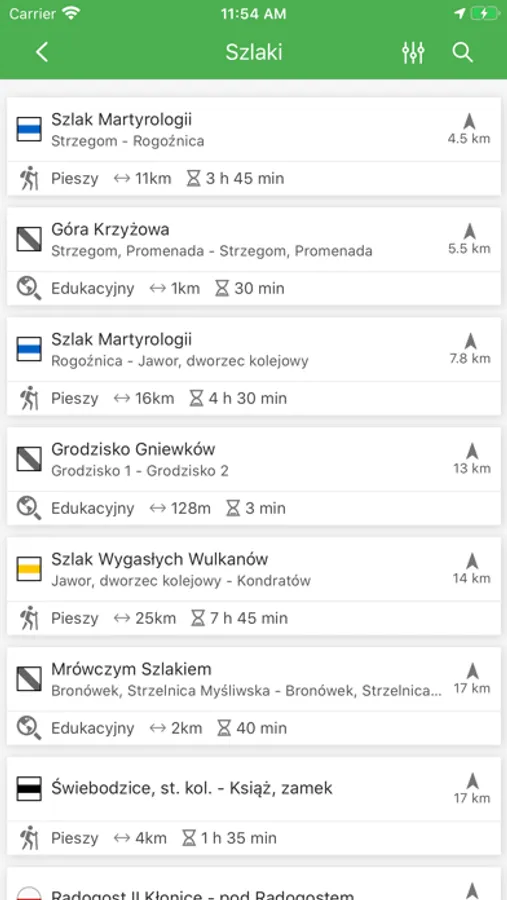 Aplikacja daje nie tylko możliwość nawigowania po wybranym szlaku, ale także opcję wskazania dojazdu do wybranego punktu oraz wyszukania ciekawych miejsc w pobliżu.