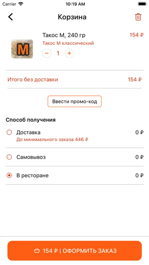 - Заказ еды без звонка диспетчеру. Отметьте точку на карте, не нужно писать длинный адрес вручную;
