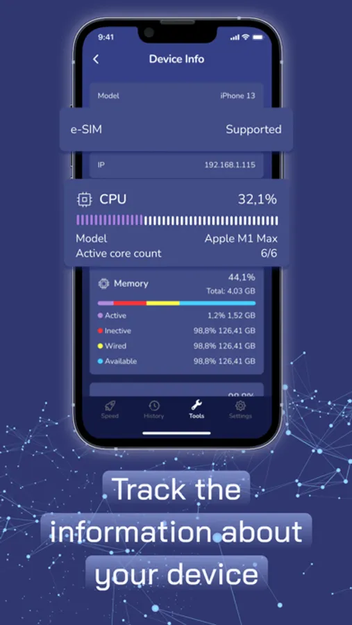See all information of your device in one place: IP, CPU, Memory, Storage in REAL TIME!