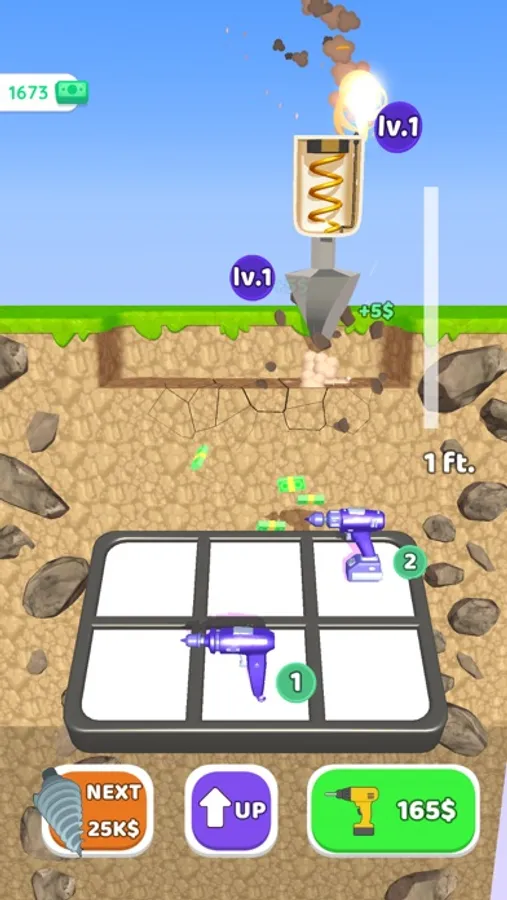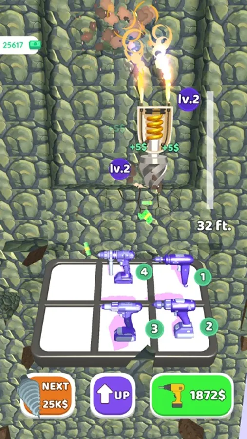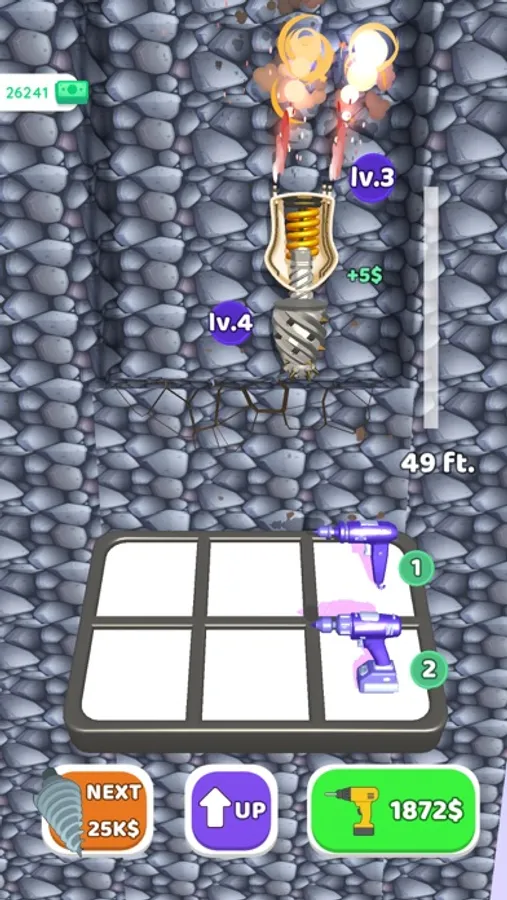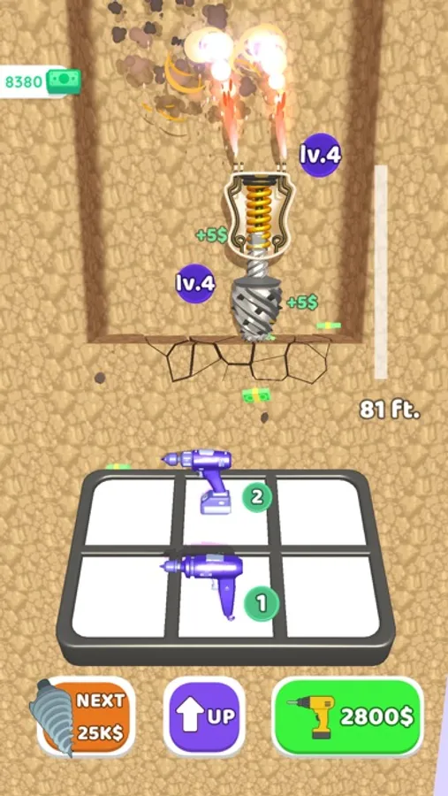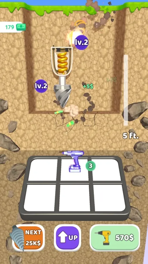 Merge the main parts and upgrade the drill machine to achieve the deepest. Remember to increase the power and speed to make more money. While drilling down you will face different layers like earth, rock, and lava. Join the newest adventure and pass all layers to the core!