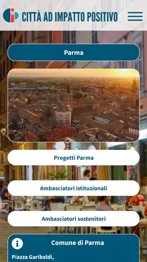 Ogni Città può diventare ad Impatto Positivo attraverso i progetti proposti da PMG e sviluppati in collaborazione con gli stakeholder del territorio. Rimani sempre aggiornato su come cresce il progetto nella tua città, con la App Città ad Impatto Positivo.