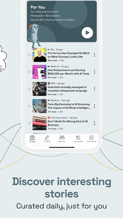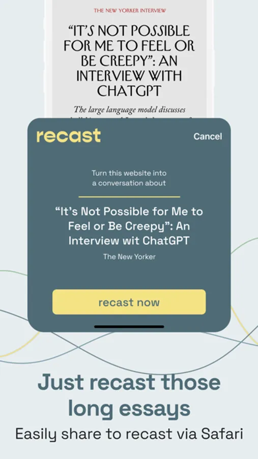 Download Recast today and start recasting your favorite articles into informative audio summaries.