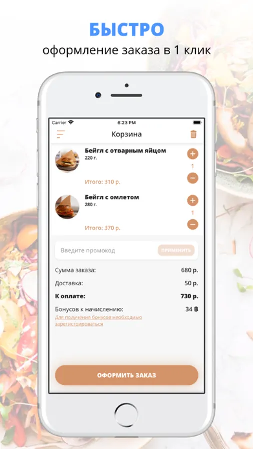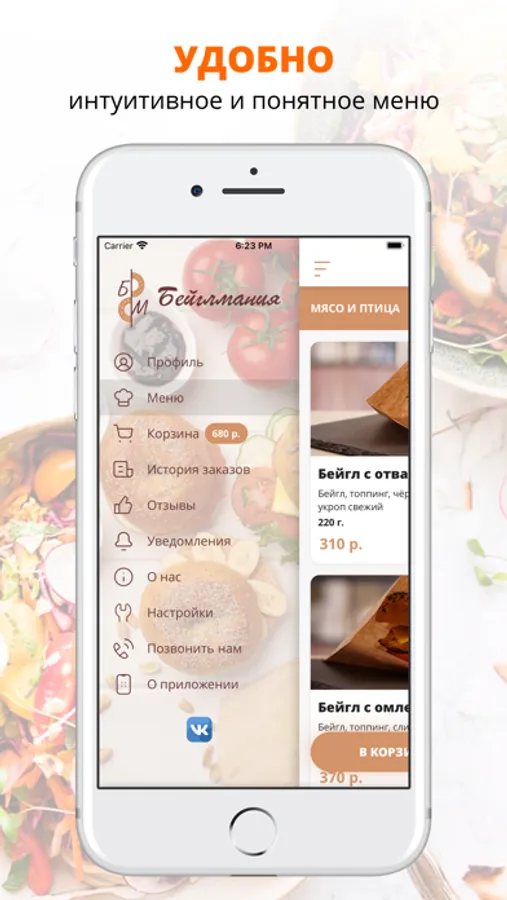 Воспользуйтесь удобным приложением для заказа еды «Бейглмания».