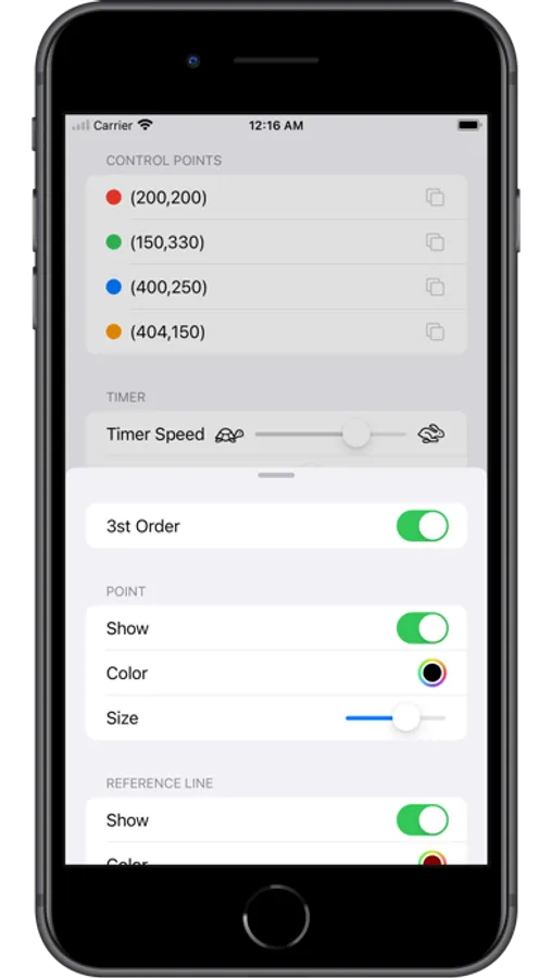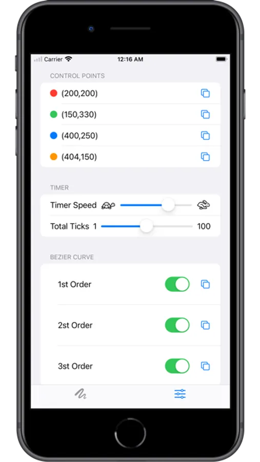 It renders three orders of Bezier function.