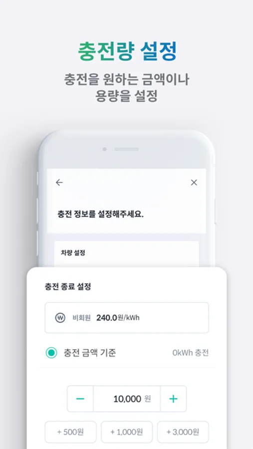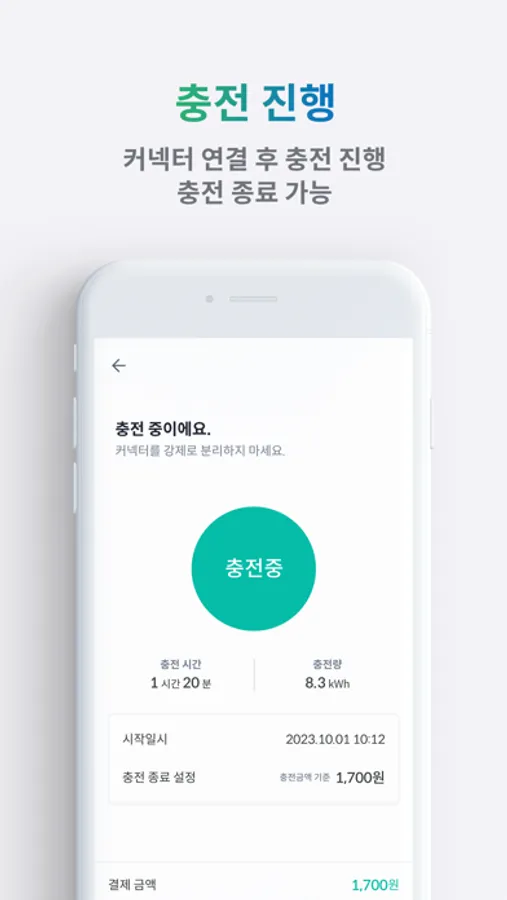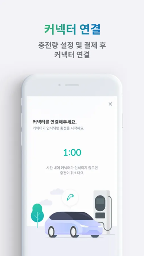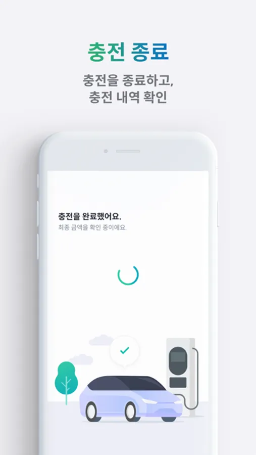 QR이미지 읽기 > 충전금액 설정 > 커넥터 연결 > 충전시작 > 충전종료 > 결제완료 순으로 앱에서 안내가 진행되며, 앱의 안내를 쉽고 편하게 따라하시면 충전이 완료됩니다.