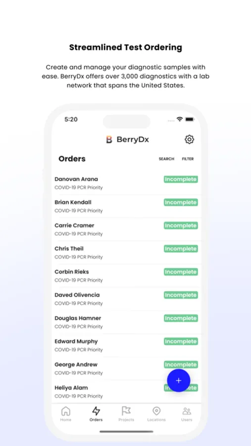 The BerryDx platform unlocks a nationwide network of laboratories, ensuring that your tests are performed swiftly. With a quick and seamless onboarding, you will be able to order from over 3,000 diagnostic tests offered through the BerryDx platform.