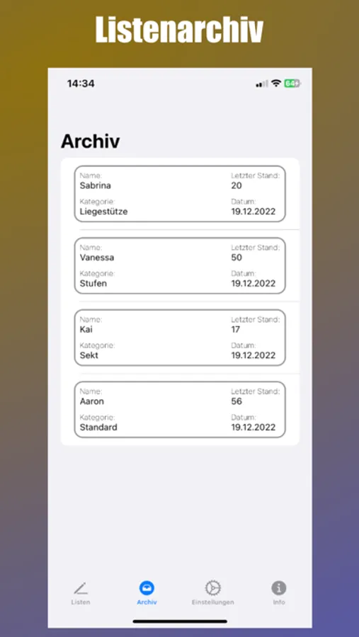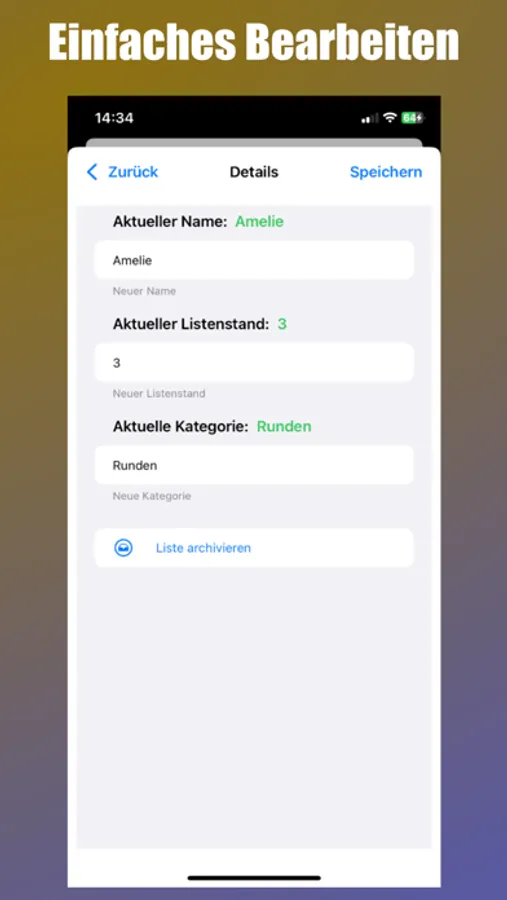 Listen können nachträglich angepasst werden. D.h. Zählerstände, Name und Kategorie.