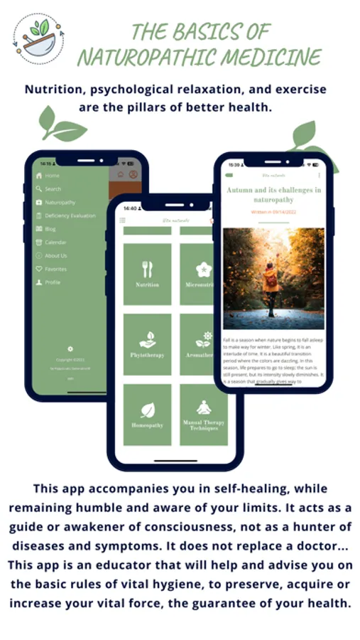 So, in this app, we share with you the fundamentals of naturopathy, the ones we use every day in our consultations with clients concerned about a healthier and more balanced life.