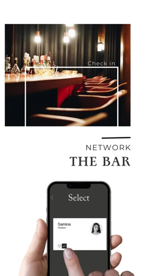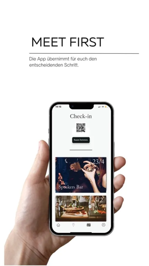 You're at a bar or event and want to contact someone? Then create a profile card digitally in the app. After checking in via QR code or numeric code, all interested parties can find each other on the app, select and - 'match'!