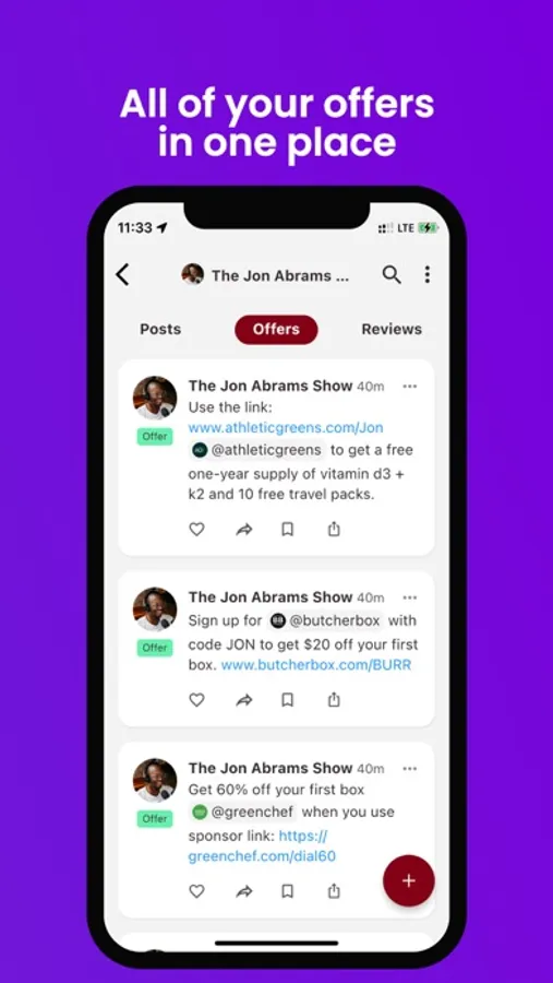 Post and discover offers from friends, creators, and your favorite brands.