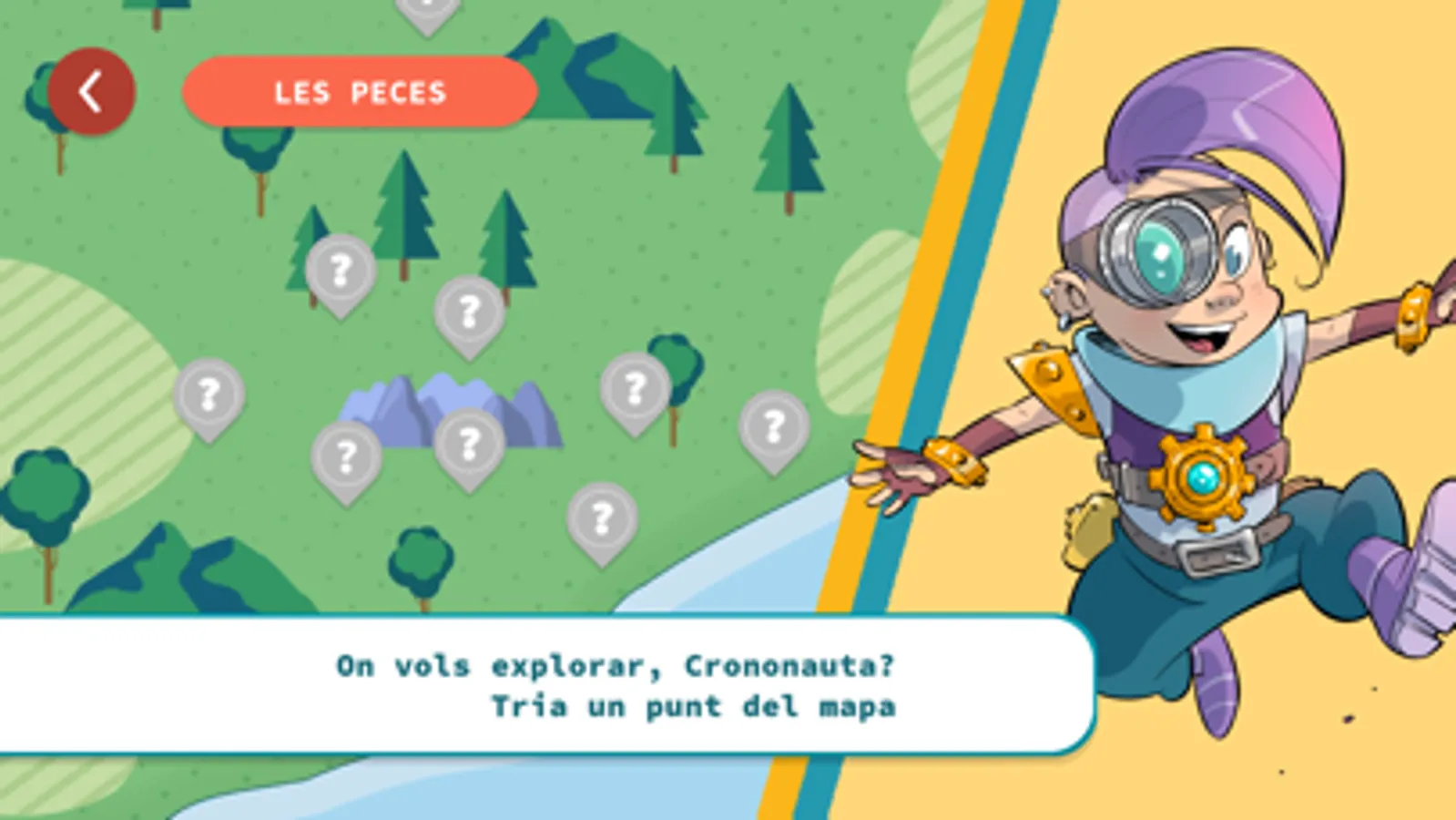 “Hola! Em dic Bel i soc Crononauta! Navego pel temps, visitant llocs molt especials i vivint episodis trepidants de la nostra història! En un dels meus viatges crononàutics, el Rellotge de la Revolució Industrial es va esmicolar i les diferents peces es van escampar per tot Catalunya… És per això que hi ha persones i llocs plens de coneixement que estan desapareixent davant dels nostres ulls! Cal que recuperem les peces i reconstruïm el Rellotge abans que l’efecte de les desaparicions sigui permanent! Per sort, aquestes peces les custodien unes persones de qui ens podem refiar. Són persones com vosaltres, i que d’una manera o altra van ser importants per a la Revolució Industrial a casa nostra. Les hem d’anar a trobar i, reconstruint el rellotge mica en mica, podrem fer que el temps de la nostra història torni a fluir!