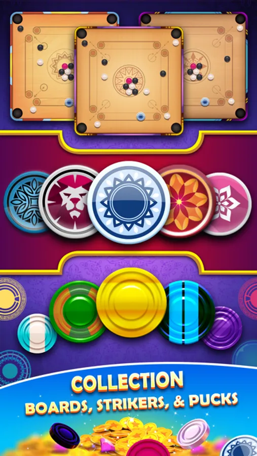 Apna Carrom introduces you to an easy-to-play Carrom game with mind-blowing features like Power Ups, Colorful Pucks & powerful Strikers uniquely designed with smooth Controls to play around the world. Here you can buy or earn coins and increase your powers.