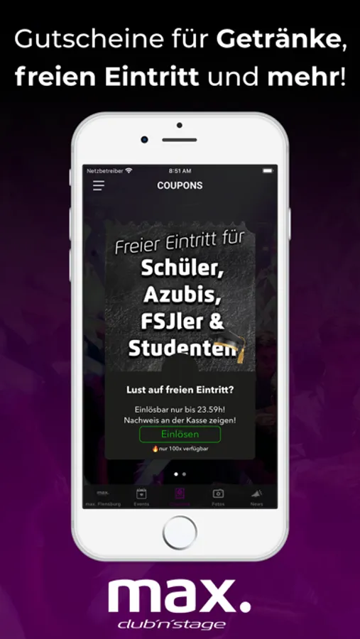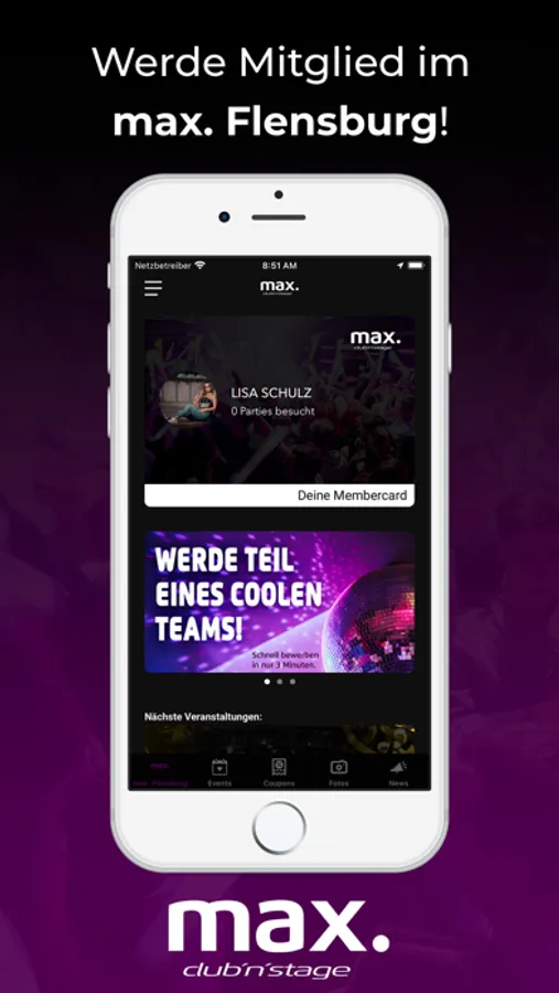 Lade dir unsere max. Flensburg App und werde Mitglied im max. Flensburg.