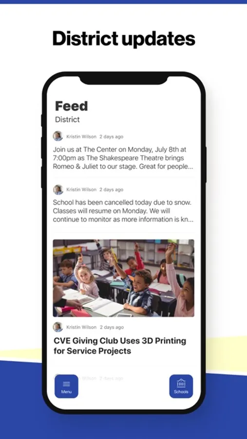 In the Live Feed is where you'll find updates from the administration about what's going on in the district right now. Whether that's celebrating a student's success, or reminding you about an upcoming deadline.