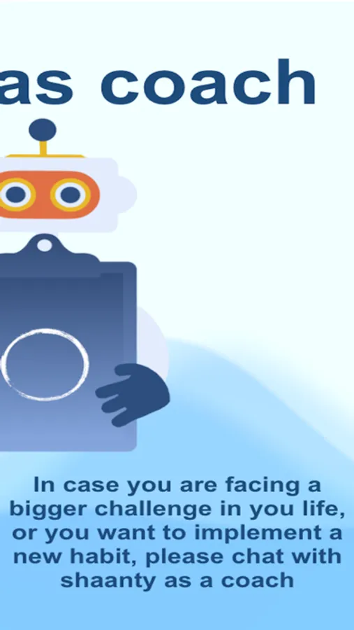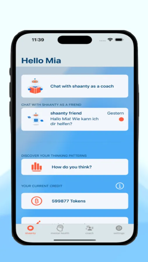 Welcome to shaanty, your personal virtual assistant for a life with more freedom in thinking, feeling and acting. Whether you are looking for someone to listen and share with or want to work on behaviour change with a coach, shaanty is there to support you according to your needs. Just try it out and get to know shaanty. Experience new impulses for your unique life and help us to improve our app. Download our app now for free. We look forward to your feedback and are grateful for your support. Thank you and have fun trying out shaanty!