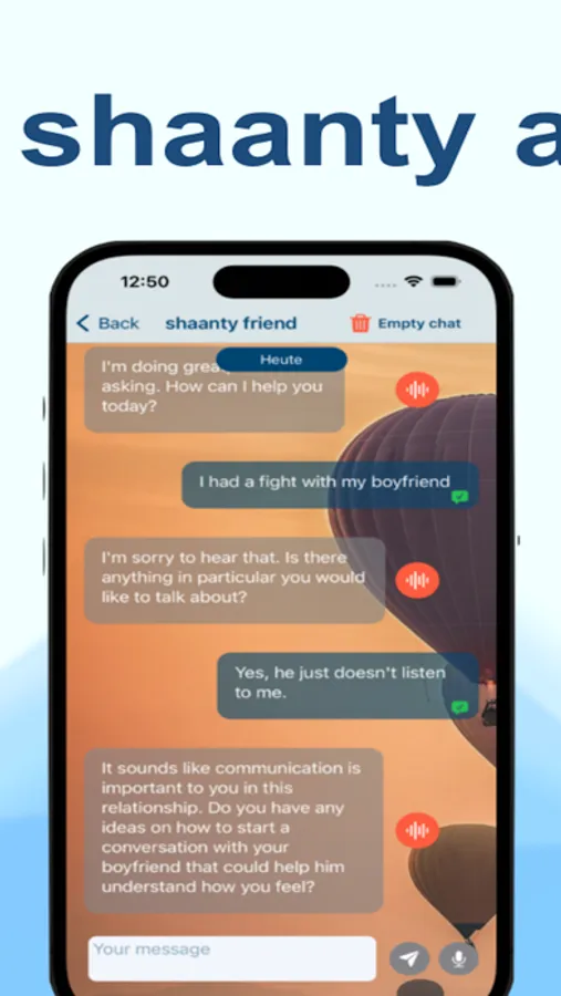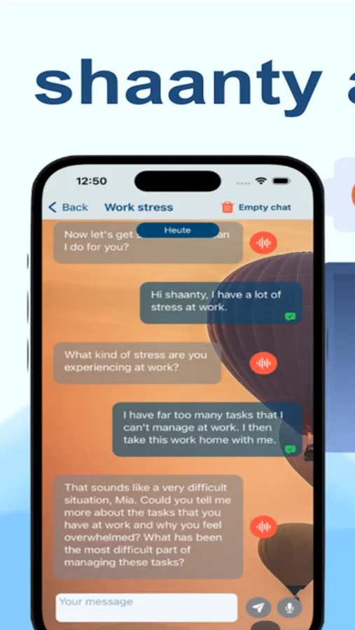 Willkommen bei shaanty, deinem persönlichen virtuellen Assistenten für ein Leben mit mehr Freiheit im Denken, Fühlen und Handeln. Ob Sie jemanden zum Zuhören und Austauschen suchen oder an einer Verhaltensänderung mit einem Coach arbeiten möchten, shaanty ist für Sie da und unterstützt Sie ganz nach Ihren Bedürfnissen. Probieren Sie es einfach aus und lernen Sie shaanty kennen. Erleben Sie neue Impulse für Ihr einzigartiges Leben und helfen Sie uns dabei, unsere App zu verbessern. Laden Sie jetzt unsere App kostenlos herunter. Wir freuen uns auf Ihre Rückmeldungen und sind dankbar für Ihre Unterstützung. Vielen Dank und viel Spaß beim Ausprobieren von shaanty!