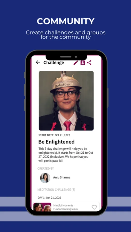* create meditation challenges, groups and events to inspire other meditators?