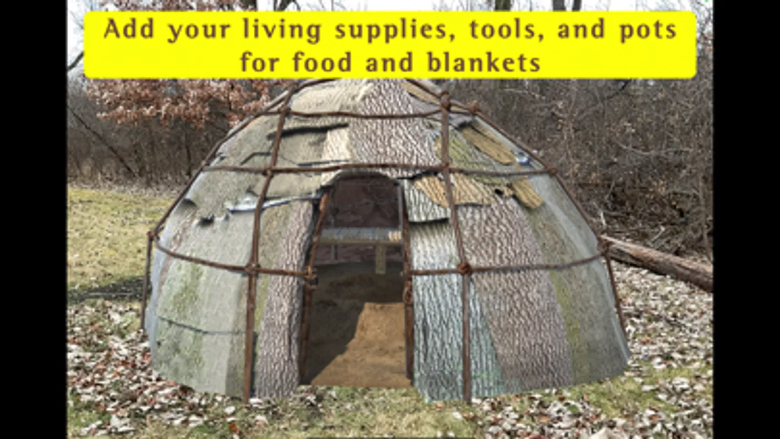 The Sac & Fox were two distinct Native American tribes. The Sac & Fox tribes lived in Michigan, Wisconsin, Illinois, Iowa and Nebraska. One of the largest villages in North America was Saukenuk, located between the Rock and Mississippi Rivers in Illinois. The primary form of housing were Bark House or Wigwams that were made from the trees along the rivers. This augmented reality app allows you to experience what it might feel like to see a Bark house. You will have the ability to see the construction steps and walk around and inside the life size replica of a virtual Bark House complete with a wood fire inside. Start Building!