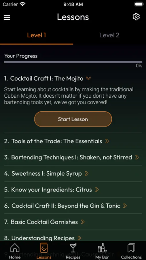 - Lesson guide that will teach you how to make cocktails. You can get started even if you don't have any experience or specific bartending tools!