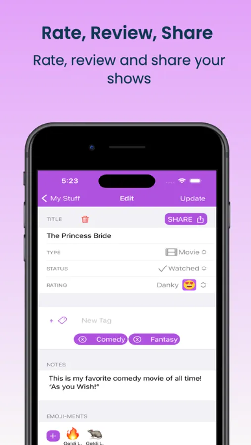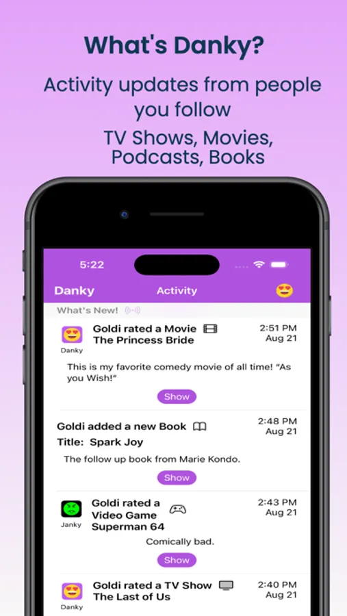 Follow up by Exchanging comments and emoji-ments about Movies, TV Shows, Podcasts, Video Games and Books