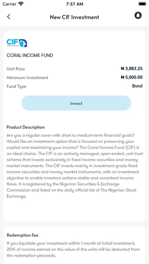 Investment Products: Dive into our intuitive dashboard, explore our comprehensive product listing, and delve into detailed product information. Stay informed with real-time transaction history and access your portfolio statements at your fingertips.