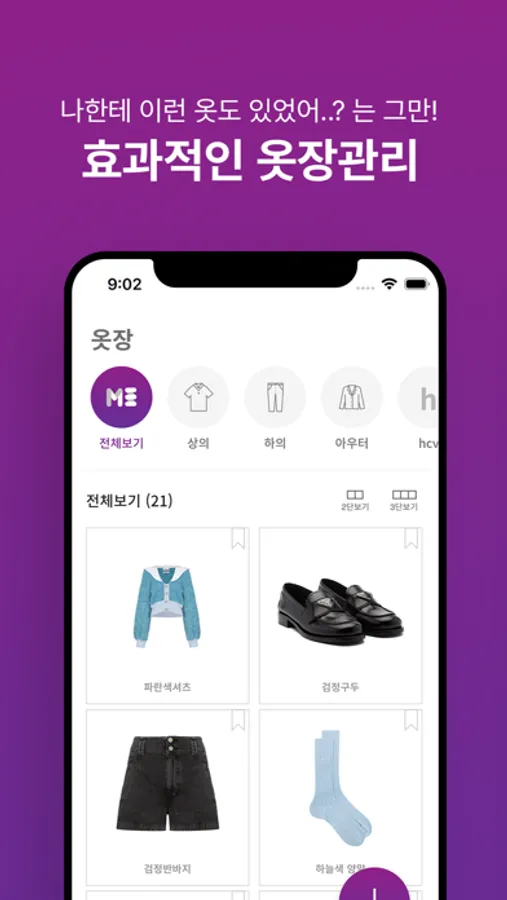 언제 어디서든 보유하고 있는 옷을 확인하고 관리할 수 있습니다.