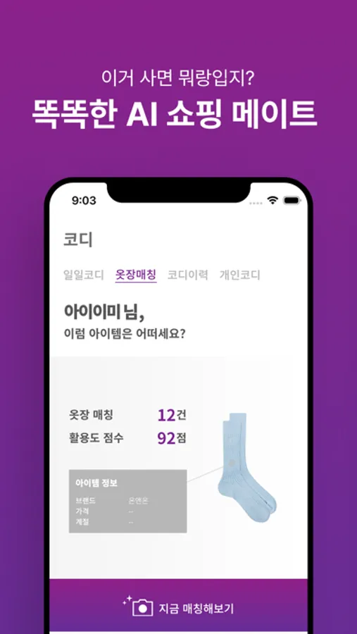 IEM가 분석하여 제공하는 예상 코디와 트렌드와 성향, 스타일을 분석해 제공하는 점수 보고 선택하세요