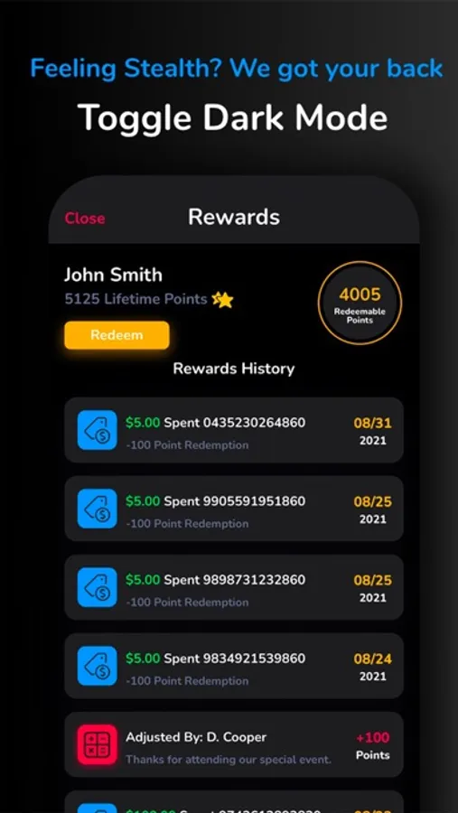 • Easily keep track of your points and redemptions right in your ap