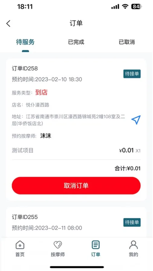 在订单模块,可以实时查看自己订单状态,有问题可以及时联系技师