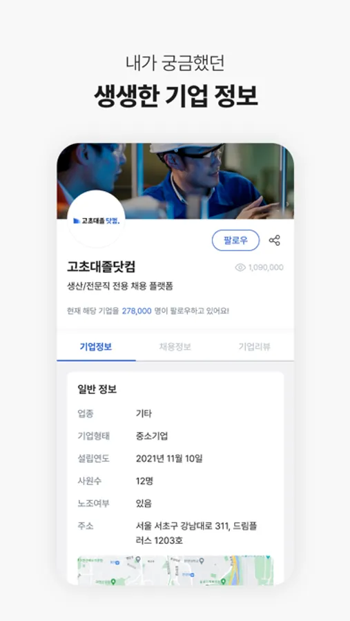 국내 생산/기능직 No.1 취업플랫폼 고초대졸닷컴