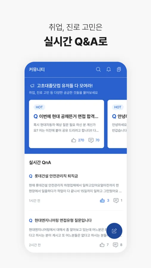 - 취업을 처음 준비하며 고민이었던 부분들을 현직자들이 얘기하는 커뮤니티에서 해결해요