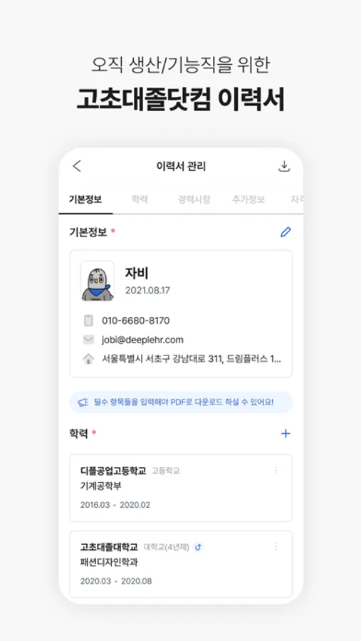 - 이메일 : cs@deeplehr.com