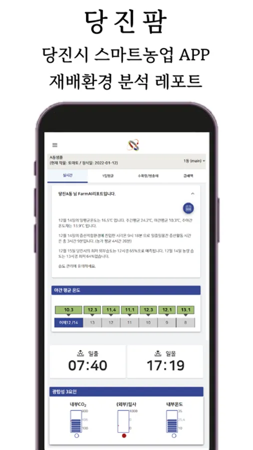 - 개별 농가용 농장분석레포트 제공 - 실시간 광합성과 증산 환경 값 제공