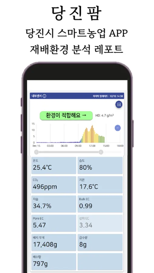 - 오늘의 환기, 관수, 증산적합 정보 제공 - 매일 증산환경 비율그래프 제공