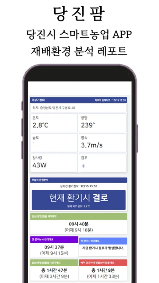 - 충청남도 당진시 관내 스마트팜 연동농가 대상 실시간 환경데이터 제공